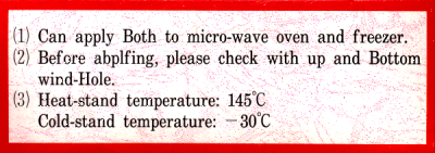 Engrish First off, we would like to say that we have nothing against the Japanese. In fact, we love sushi, we compose haiku and have even studied Zen Buddhism. It's just that some Japanese corporations really should consult an English-speaker before launching products bearing English text. Or maybe not, it would deprive us of some delightful reading. We found this food container in our local Asian supermarket. Its carton reads like goofy poetry... |